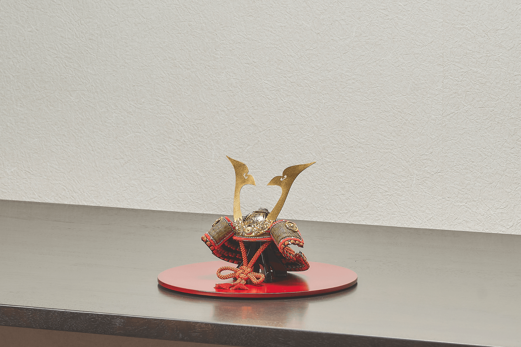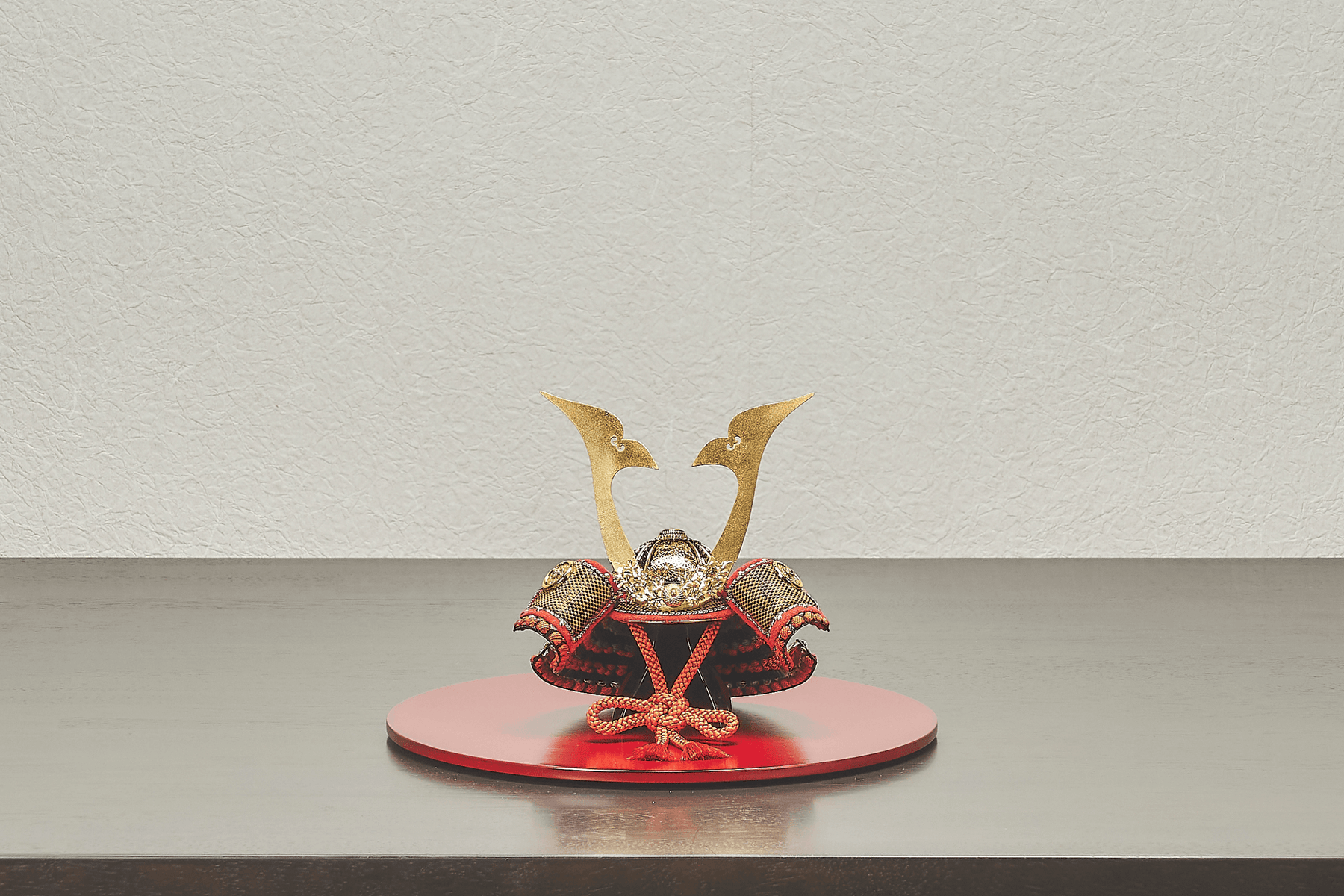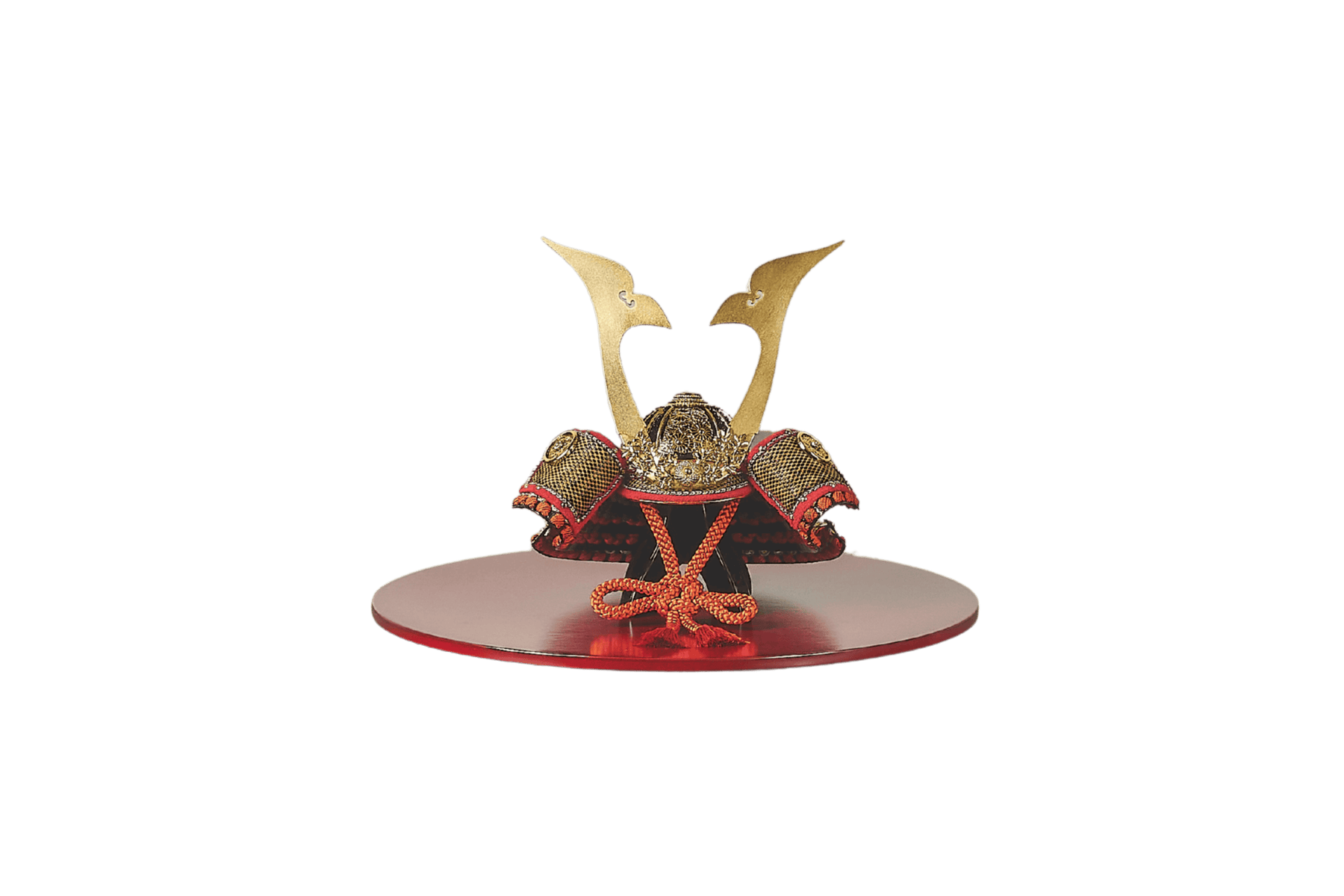 兜を構成する一つ一つの金具部品。そのすべてに職人の技を注ぎ込んだ、芸術的な一揃いです。テーマは「菊尽くし」。特に兜のおでこにあたる「目庇(まびさし)」の金具は、菊の葉一枚一枚が浮き立つような圧巻の造形美。この神業ともいえる細かな作業を、極小サイズの兜で実現しました。まさしく「手のひらに乗る究極の芸術品」です。
