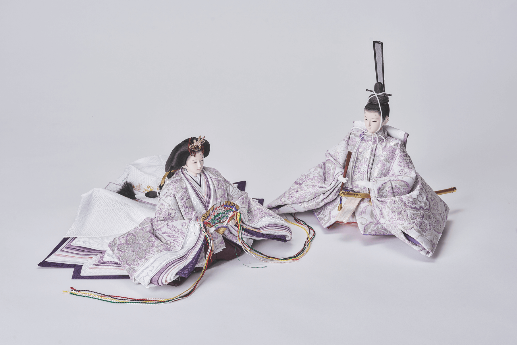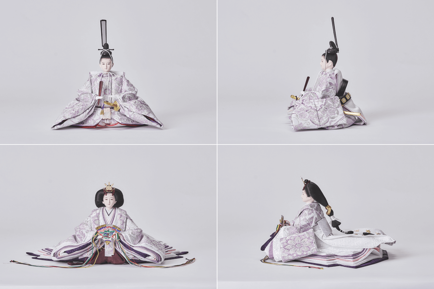 元来、お雛様のお顔は、表情が少ない、能面のような顔が由来。今でもその無表情の中にいくつもの感情を反映させるのが顔師の技です。こちらは、伝統と革新の絶妙なバランスをついたお顔。「現代風」では片付けることのできない魅力に惹きつけられ、近くで見れば見るほど、目が離せなくなり、愛おしさを感じます。